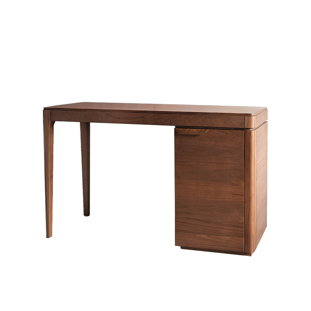 一張可傳承世代的實木書桌,以北歐經典設計為參考藍圖,嚴選頂級北美胡桃實木製作,整張書桌為全實木不用一般木夾板與木貼皮,120公分大桌面搭配右側收納櫃設計,實用美觀、經典款式、穩固耐用。