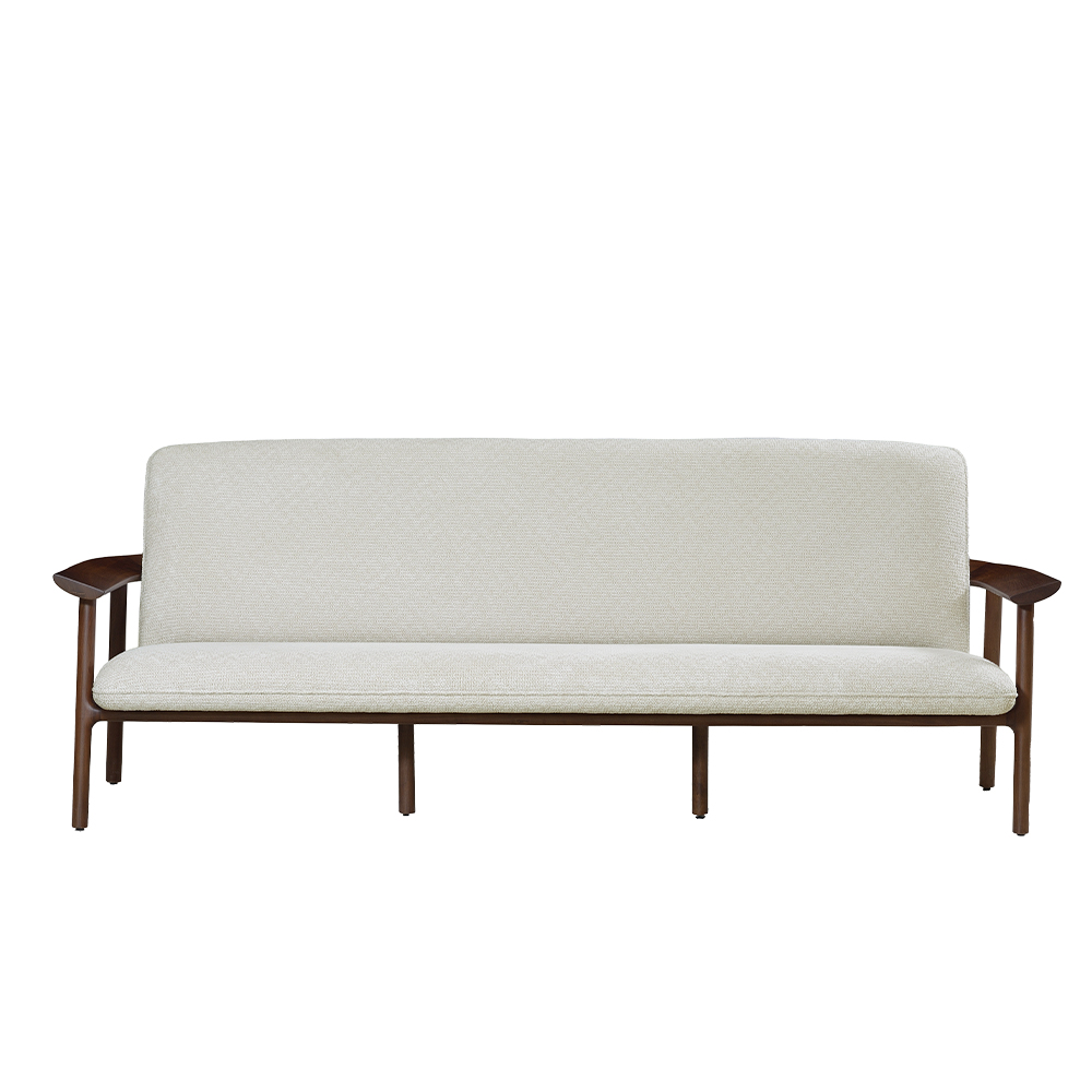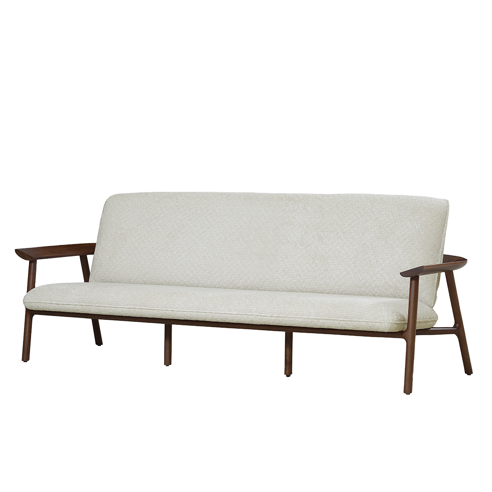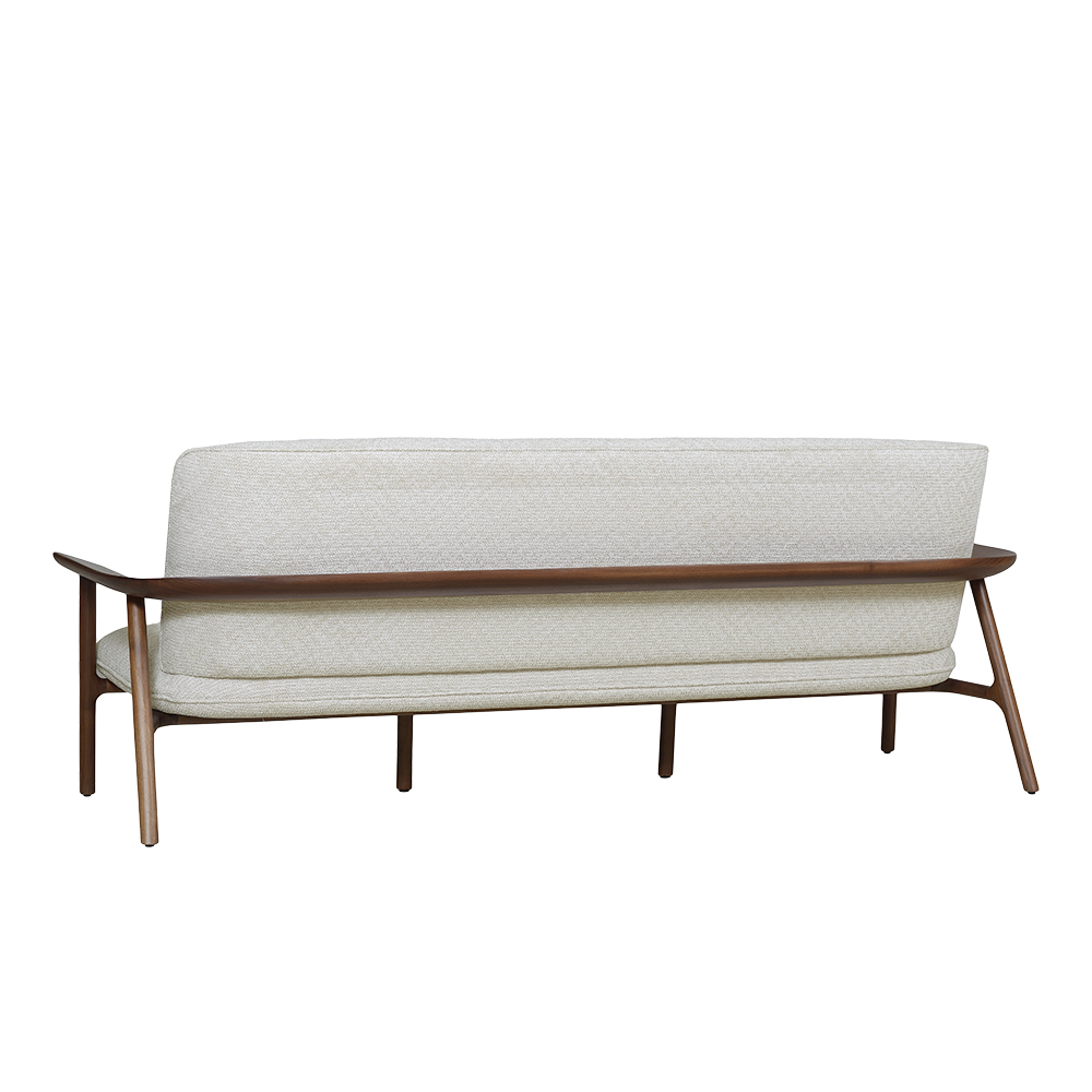 整體沙發主體採用北美胡桃木實木框架,展現自然木紋細節與溫潤色澤,質感沉穩又具有工藝質感,兼具耐用與視覺品味。