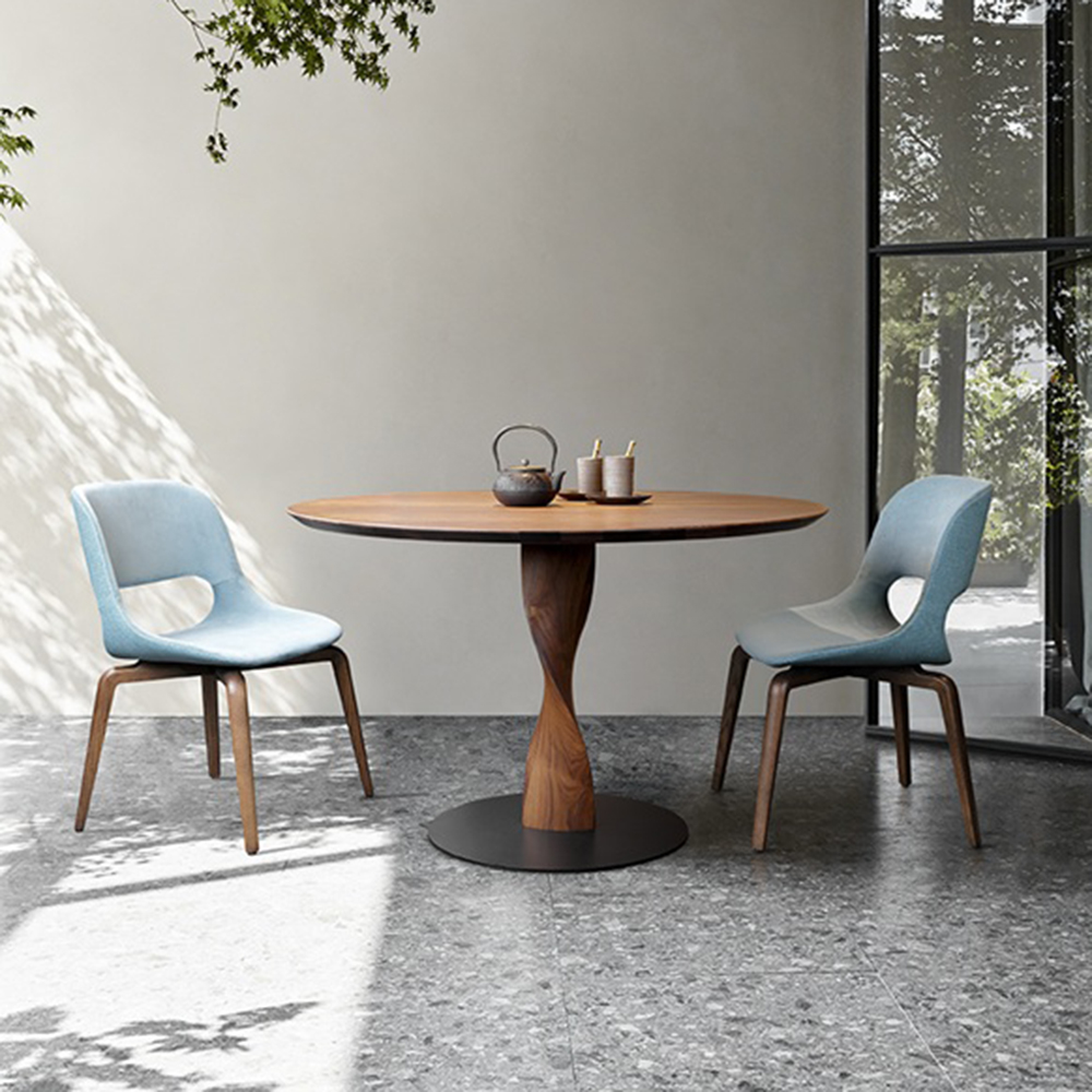 胡桃木木質溫潤厚實,餐桌經多道工序圓潤打磨,保留木材的自然紋理與細膩觸感。